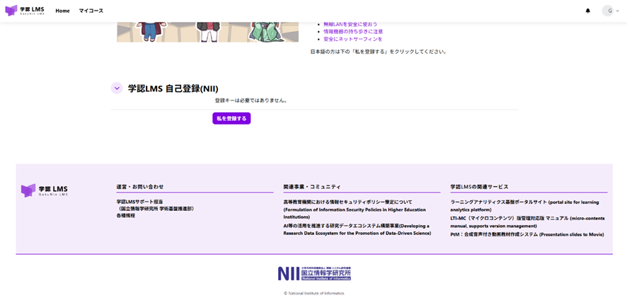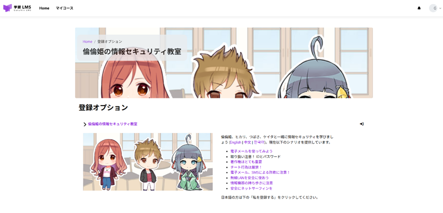 7. 「 倫倫姫の情報セキュリティ教室 」画面が表示されるので「私を登録する」ボタンをクリックします。